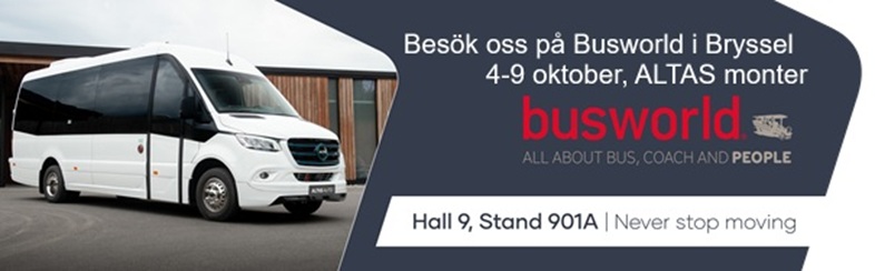 Om ni ska besöka Busworld 2025 i Bryssel så är ni välkomna till ALTAS, hall 9, Stand 901A. Vi ska vara där 4-9 oktober, finner ni oss inte i montern är det bara att ringa tel. +46 70 712 60 88