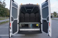 Skolskyltar LED, backvarnare, tonade sidorutor, nödutgångslucka. Fordon utrustat med glashammare, bälteskniv, handbrandsläckare, förbandslåda. Batteriladdare Defa