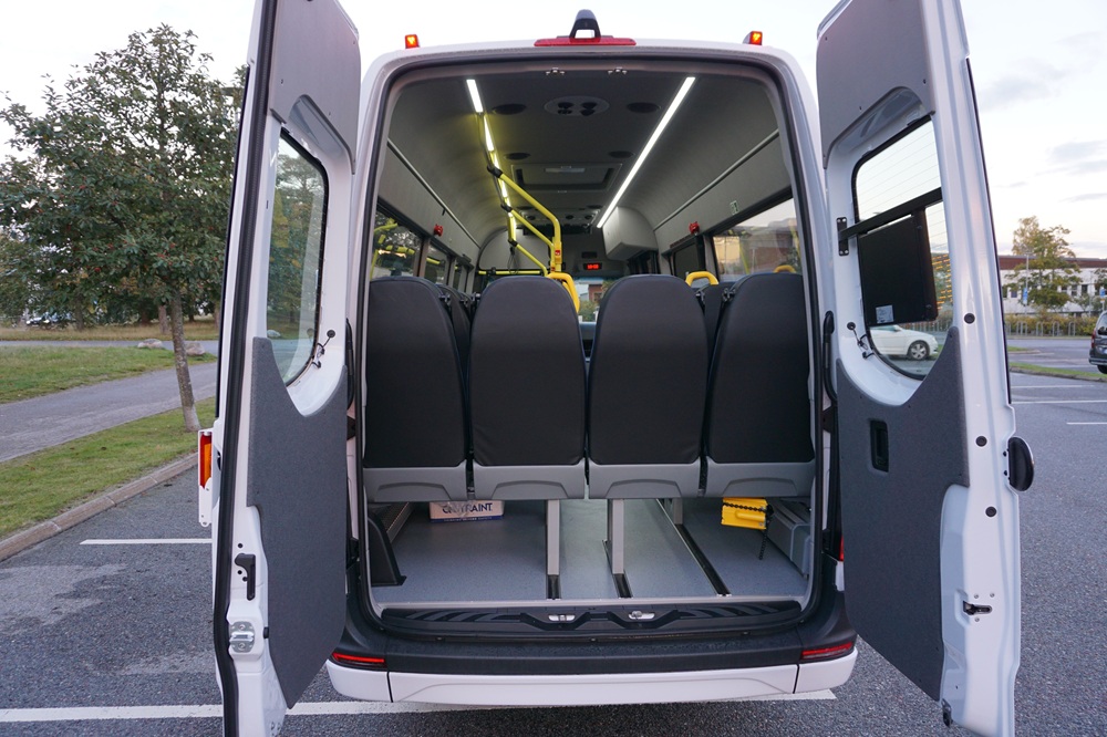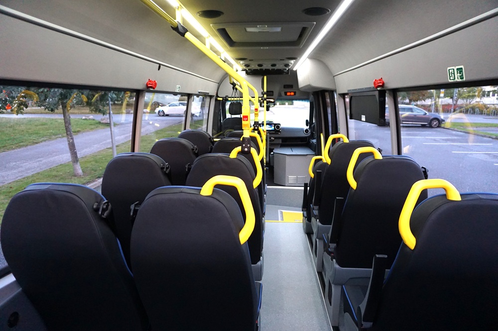 Antal sittande passagerare: 18 st. (16 st. vanliga stolar + 2 st. klappstolar)