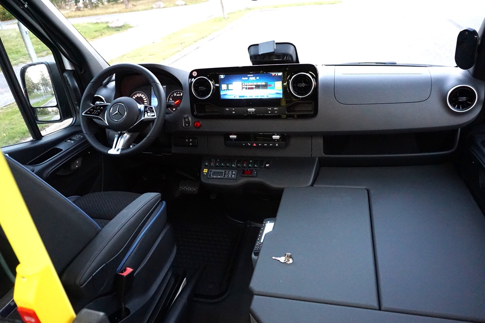 Automat växellåda, 125 KW motor, förar AC, tillsatsvärmare, MBUX original 10' media, backkamera, komfort förarstolen med armstöd, klädd i original MB tyg, el backspeglar med uppvärmning, justerbarratt, extra förbrukningsbatteri, färgdisplay på Mercedes instrumentering, multifunksionsratt i skinn,LED strålkastare, m.m.
